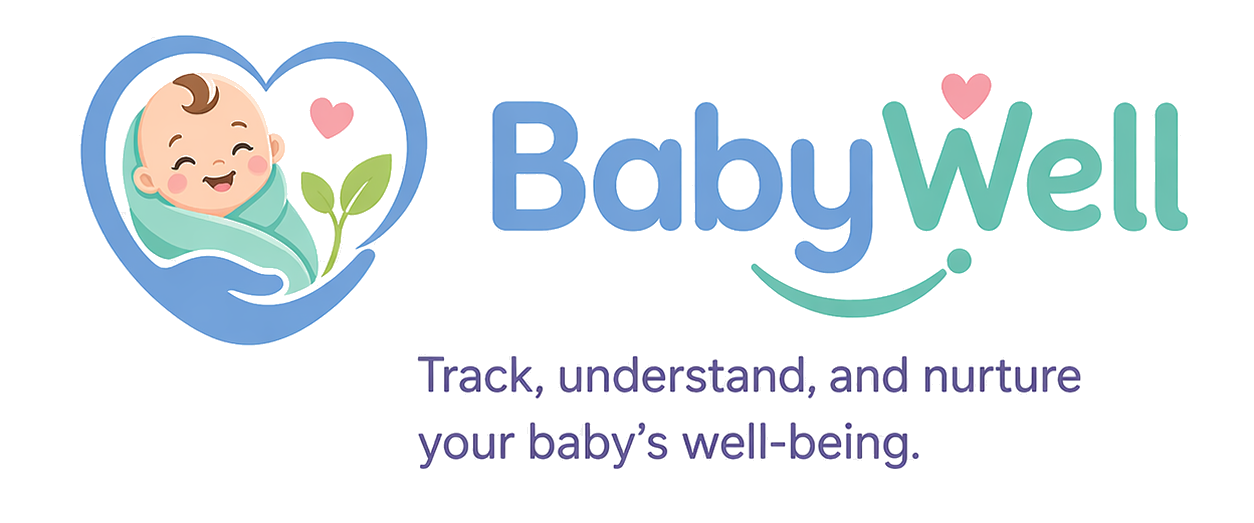 Baby Well backgroundBaby Well logoBaby Well app screens on four iPhones